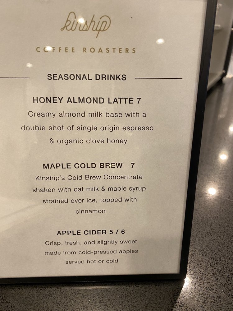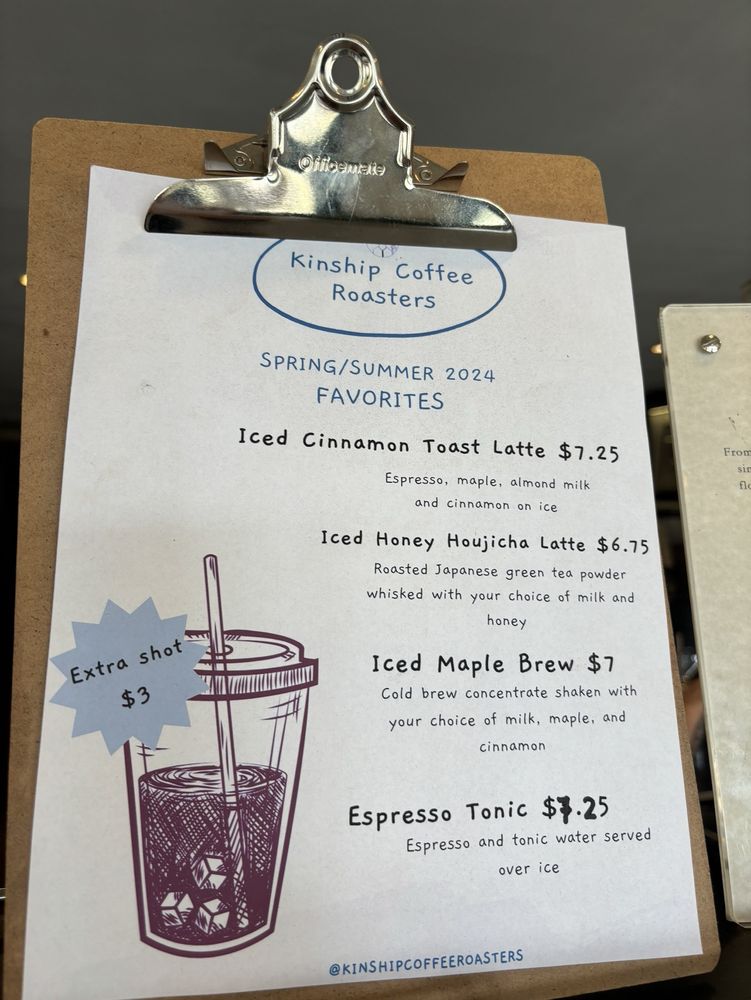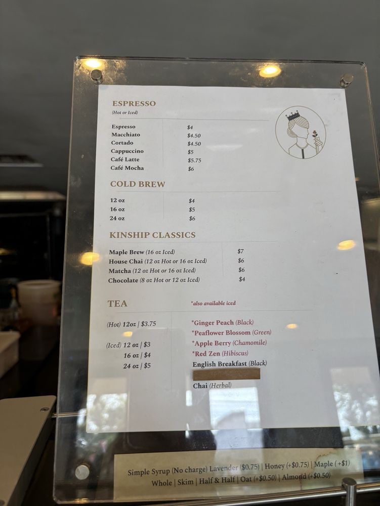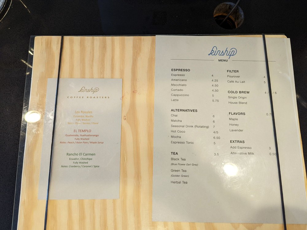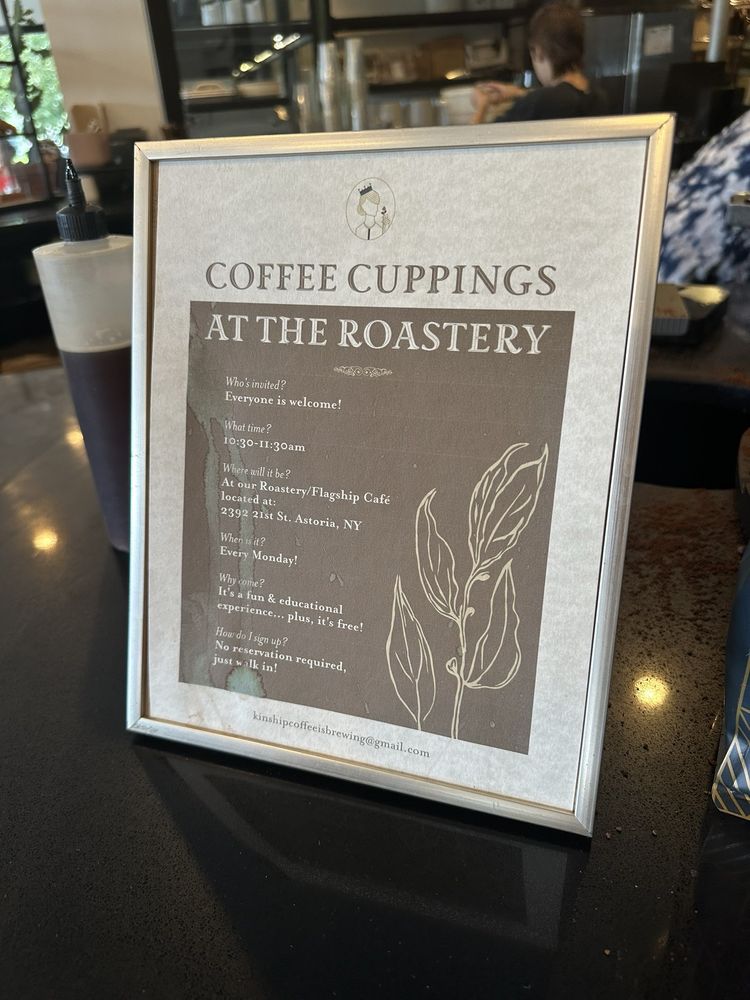 Kinship Coffee in Astoria, NY, offers a cozy and spacious ambiance with plenty of seating, both indoors and outdoors. Customers praise the friendliness of the baristas and the quick service. They have real cups, which adds a homey touch to the experience. The café is known for its high-quality coffee, with top-notch roasting and expertly steamed milk. Customers appreciate the variety of drinks, including decaf options and unique concoctions like the Winter Tonic. Kinship Coffee also hosts cuppings of their espresso, adding an educational aspect to the coffee experience. With free Wi-Fi and a nearby park, it's a great spot for working or relaxing with a book. Kinship Coffee is a neighborhood gem that attracts coffee enthusiasts from all over NYC.